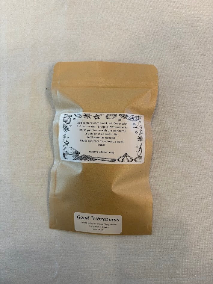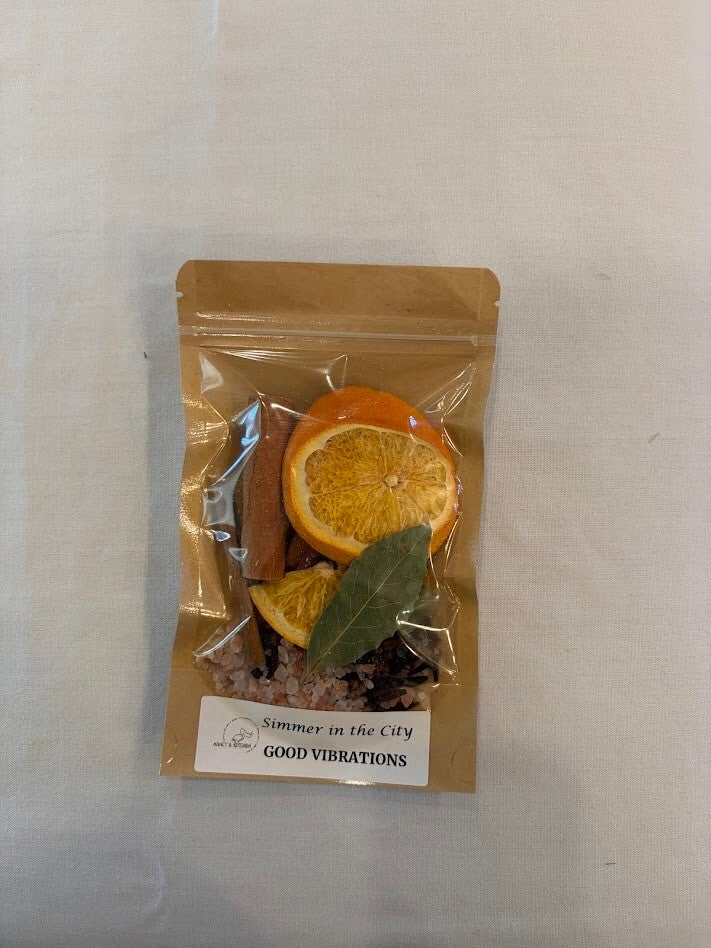 Good Vibrations in a citrusy scent that is perfect for Spring and Summer! This Simmer Spice is a pet-safe alternative to candles, and it lasts longer! This blend has freeze-dried oranges, bay leaves, cinnamon, cloves, and coarse salt. Pop a pot with 2-3 cups of water in it with Good Vibrations included, bring to a simmer, and enjoy!